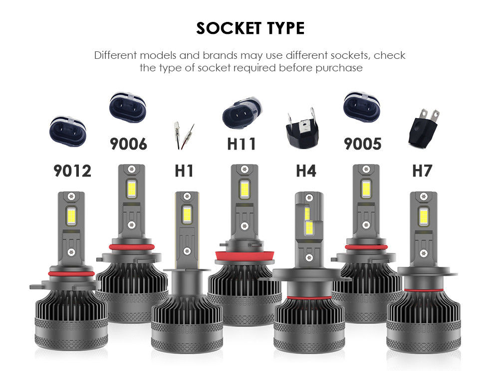 H1,H3,H7,H11,9005,9006,9012,880 | 1الطاقة: بدء: 150 واط مستقر: 90 واط 2مصدر الضوء: 4575 (40mil * 40mil * 15pcs) 3، الضوء: 11000Lm ± 5 ٪ 4درجة حرارة اللون: 6000-6500 كيلو 5وضع التبريد: مروحة صامتة عالية السرعة + أنبوب نحاسي مزدوج 6الجهد: 12-24 فولت 7المادة: الألومنيوم الطيران 8مصدر الطاقة: خارجية |